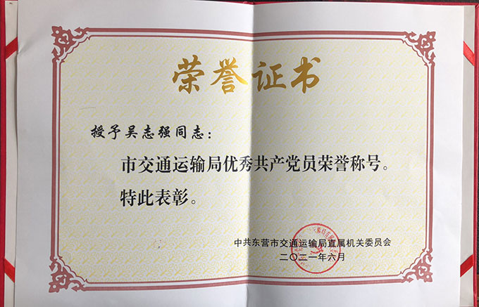 • 吳志強榮獲”市交通運輸局優(yōu)秀共產(chǎn)黨員“榮...